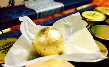 우황청심환에는 여러 가지 재료가 들어 있습니다. 재료를 섞어서 동그라미로 만든 것입니다. 거기에 금박을 입혀서 우리가 보는 우황청심환이 나오는 거죠. 석웅황, 용이각, 우황, 맥문동, 당귀, 인삼, 감초, 산약 등이 포함되어 있습니다. 그런데 최근에는 석웅황은 중금속으로 알려져 더 이상 사용하지 않게 되었습니다.
