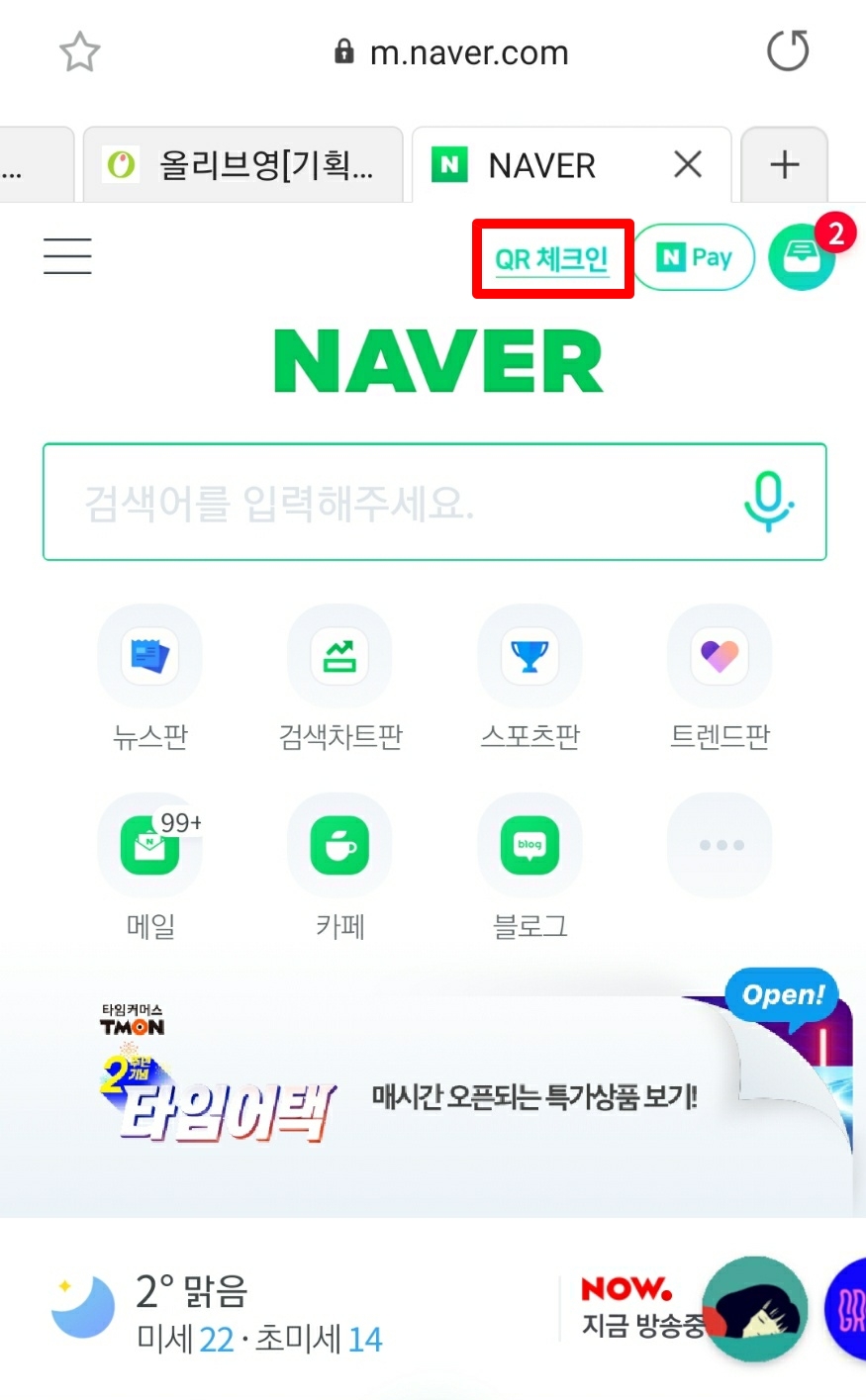 네이버의 경우는 네이버 상단의 보면 qr체크인 버튼이 있습니다. 이 부분을 클릭하고 약관 동의하면 입장을 위한 큐알코드가 나오게 됩니다. 저는 원래 처음에는 네이버 체크인을 많이 사용했는데요. 최근에는 다음 카카오톡 큐알체크인을 더 많이 쓰고 있습니다. 편하신 방법으로 하면 될 것 같아요.